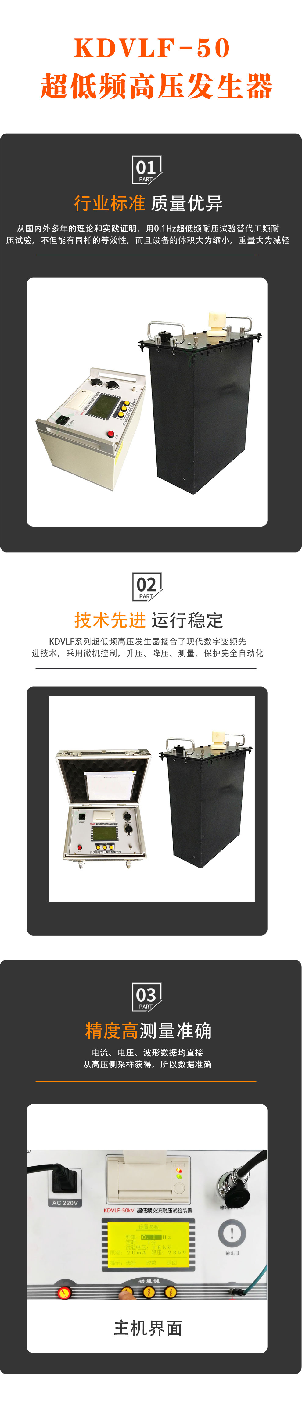 KDVLF-80 超低頻高壓發(fā)生器主要用于電力部門對(duì)PE(聚乙烯)/XLPE(交聯(lián)聚乙烯)等塑料電力電纜的非破壞性絕緣耐壓試驗(yàn),具有電源過(guò)流、高壓過(guò)流、油箱過(guò)熱保護(hù)功能,輸出調(diào)壓器不回零高壓不能啟動(dòng)等功能,是傳統(tǒng)工頻耐壓試驗(yàn)設(shè)備的換代。KDVLF系列超低頻高壓發(fā)生器接合了現(xiàn)代數(shù)字變頻新的技術(shù),采用微機(jī)控制,升壓、降壓、測(cè)量、保護(hù)自動(dòng)化,并且在自動(dòng)升壓過(guò)程中能進(jìn)行人工干預(yù)。由于電子化,所以體積小重量輕、大屏幕液晶顯示,清晰直觀、且能顯示輸出波形、打印機(jī)輸出試驗(yàn)報(bào)告。