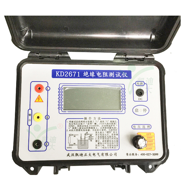 KD2671系列型智能數(shù)字絕緣電阻測試儀采用嵌入式工業(yè)單片機實時操作系統(tǒng),智能數(shù)字與數(shù)字段碼顯示較好結合,該系列表具有多種電壓輸出等級(250V、500V、1000V、2500V、5000V、10000V)、容量大、抗干擾強、模擬指針與數(shù)字同步顯示、交直流兩用、操作簡單、自動計算各種絕緣指標(吸收比、極化指數(shù))、各種測量結果具有防掉電功能等特點。是測量大容量變壓器、互感器、發(fā)電機、高壓電動機、電力電容、電力電纜、避雷器等絕緣電阻的測試儀器。
