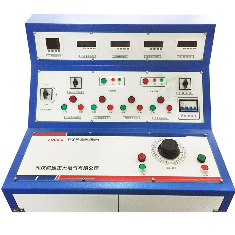 KDGK-II高低壓開關柜通電試驗臺用于高低壓開關柜生產(chǎn)廠家對所生產(chǎn)的高低壓開關柜進行出廠前的各項通電試驗。它能提供各種交、直流電源,便于對開關柜的檢測,提高工作效率。