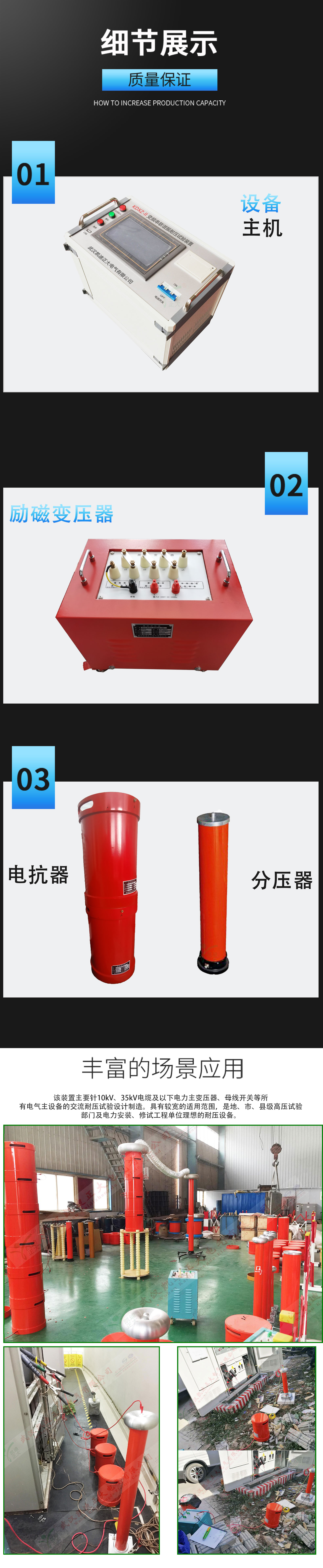 參考標(biāo)準(zhǔn): 《電氣裝置安裝工程電氣設(shè)備交接試驗(yàn)標(biāo)準(zhǔn)》 GB50150-2006 《高壓諧振試驗(yàn)裝置》DL/T 849.6—2004