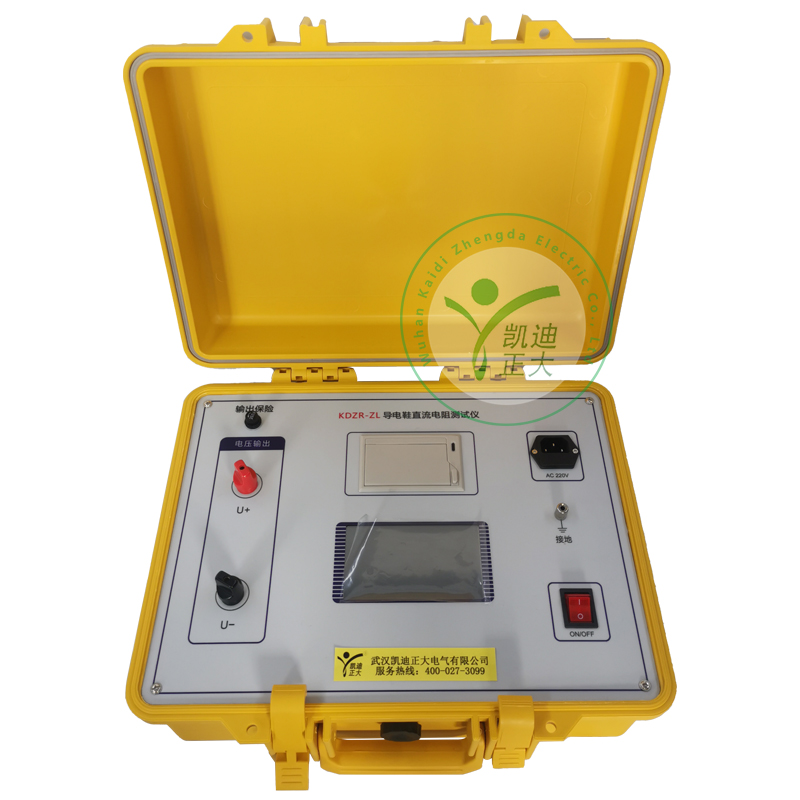 KDZR-ZL導(dǎo)電鞋直流電阻試驗儀是用于測量電力安全工器具導(dǎo)電鞋的電阻。主要為了發(fā)現(xiàn)導(dǎo)電鞋的隱患而進行的預(yù)防性試驗。遵照《GBT 6568-2008帶電作業(yè)用屏蔽服裝》、《DLT 976-2017 帶電作業(yè)工具、裝置和設(shè)備預(yù)防性試驗規(guī)程》要求,導(dǎo)電鞋的電阻不大于500Ω。不僅制造廠在出廠時須按這一標準檢驗,合格后才能出廠。在實際使用時也須按這一規(guī)程定期檢驗,合格后才能穿用。
