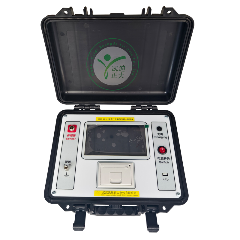 KDGK-2016隔離開關(guān)觸指壓緊力測試儀,只要將測試鉗模擬觸頭的傳感器在每對觸指接觸位置張開一下,就能顯示出觸指此時的接觸壓力并記憶。有效解決了測量觸指壓力的難題。