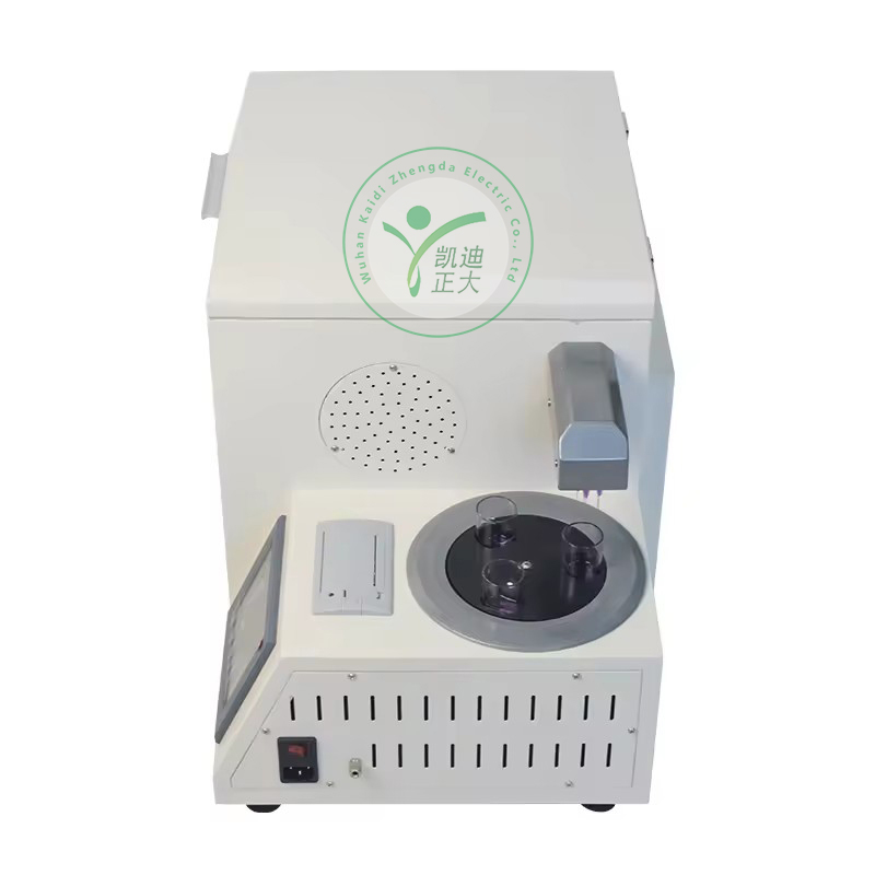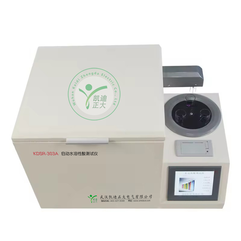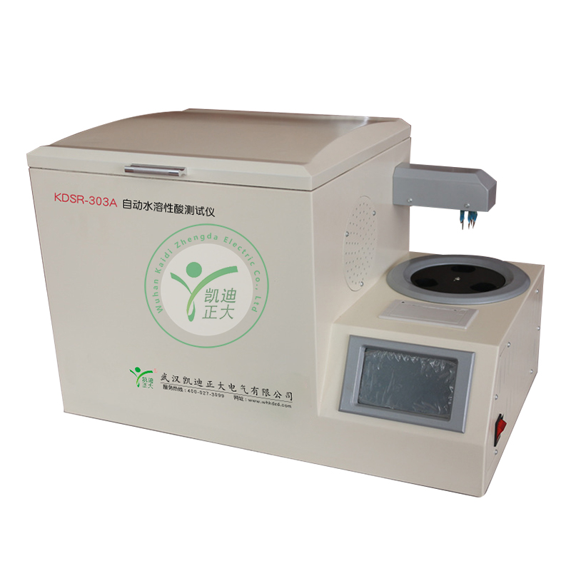 我公司生產(chǎn)的KDSR-303A型自動水溶性酸測試儀(比色法)是根據(jù)《GB/T7598-2008運行中變壓器油水溶性酸測定法》及相關(guān)標(biāo)準(zhǔn)設(shè)計制造。采用大屏幕彩色液晶顯示器,利用微處理器控制,可以根據(jù)用戶的設(shè)定條件自動完成加熱、恒溫、振蕩、取樣、測試、清洗、打印等功能,可以一次性測量1-3個樣品,縮短了用戶的測試時間,提高了工作效率,減輕了工作人員的勞動強度;并支持無線傳輸功能。
