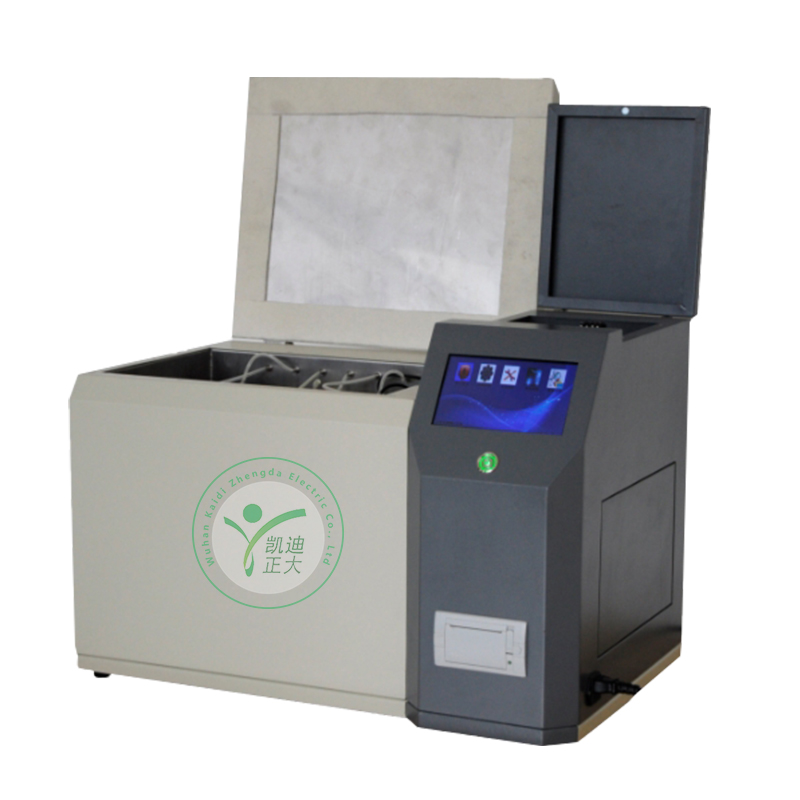 KDSR-303D全自動水溶性酸測試儀(比色法)是根據(jù)中華人民共和國國家標(biāo)準(zhǔn)GB/T7598-2008運(yùn)行中變壓器油水溶性酸測試法及相關(guān)標(biāo)準(zhǔn)設(shè)計(jì)制造。采用大屏幕液晶顯示,利用微處理器控制,可以根據(jù)用戶的設(shè)定條件自動完成加熱、恒溫、振蕩、取樣、測試、清洗、打印等功能,可以一次性測量1-6個(gè)樣品,縮短了用戶的測試時(shí)間。