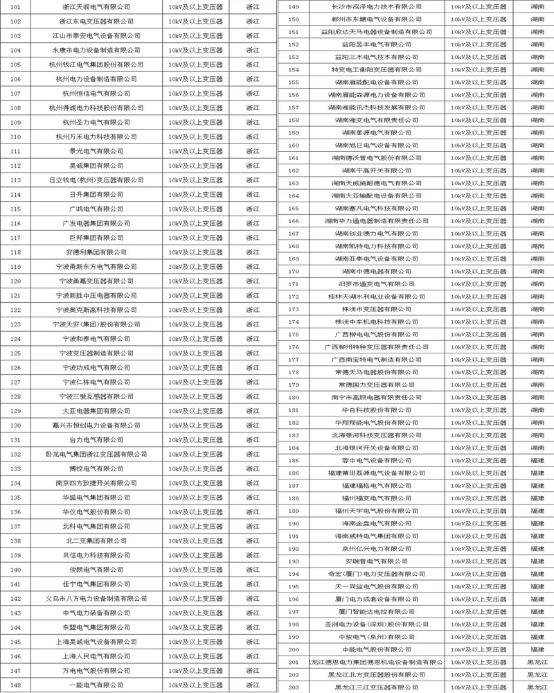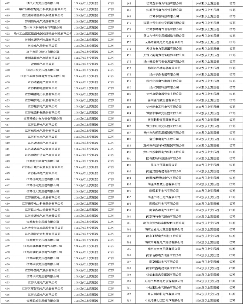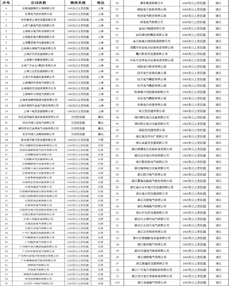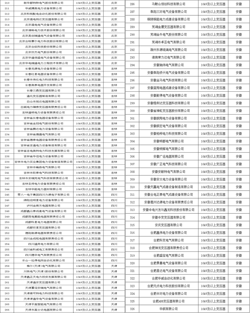 附各省市電力公司符合此次核實標準的變壓器企業(yè)名單: