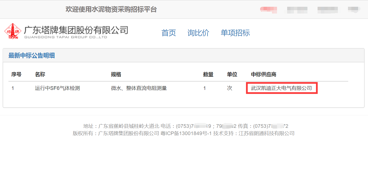 祝賀我司中標(biāo)塔牌集團運行中SF6氣體檢測