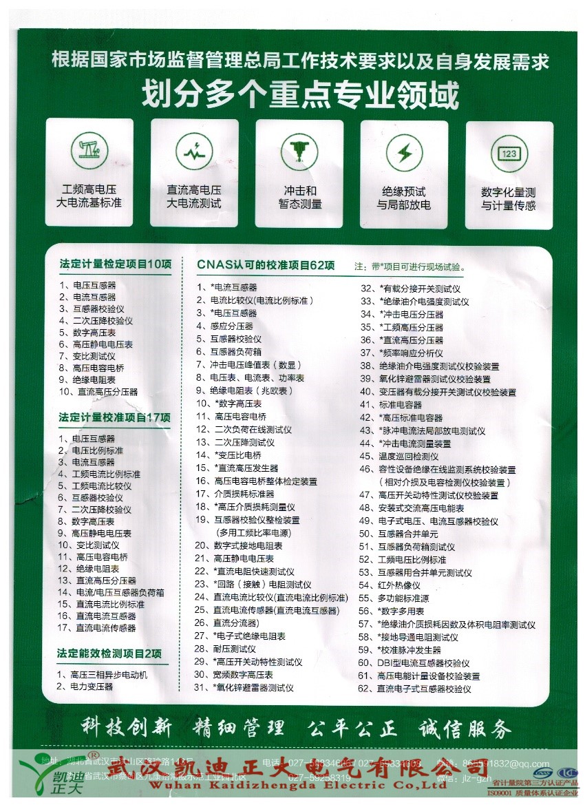 國家高電壓計量站是由國家市場監(jiān)督管理總局(原國家質(zhì)量監(jiān)督檢驗檢疫總局)直接授權(quán)的計量技術(shù)機構(gòu)之一,授權(quán)領(lǐng)域項目是全國量值溯源的源頭。