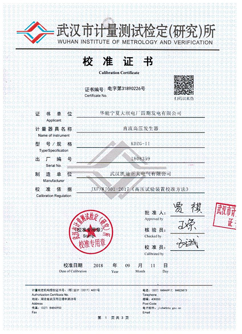 上一篇:武漢凱迪正大KDZD-100KV交直流數(shù)字千伏表校準證書