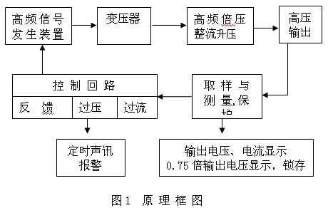 凱迪正大系列直流高壓發(fā)生器應(yīng)用最新電力電子技術(shù),采用高新的PWM調(diào)制技術(shù)及大功率MOSFET器件,通過中頻倍壓整流而成;該發(fā)生器具有紋波系數(shù)小、輸出穩(wěn)定可靠,體積小、重量輕的特點(diǎn),且具有可靠、靈敏的內(nèi)部保護(hù)功能,其原理框圖如圖所示。