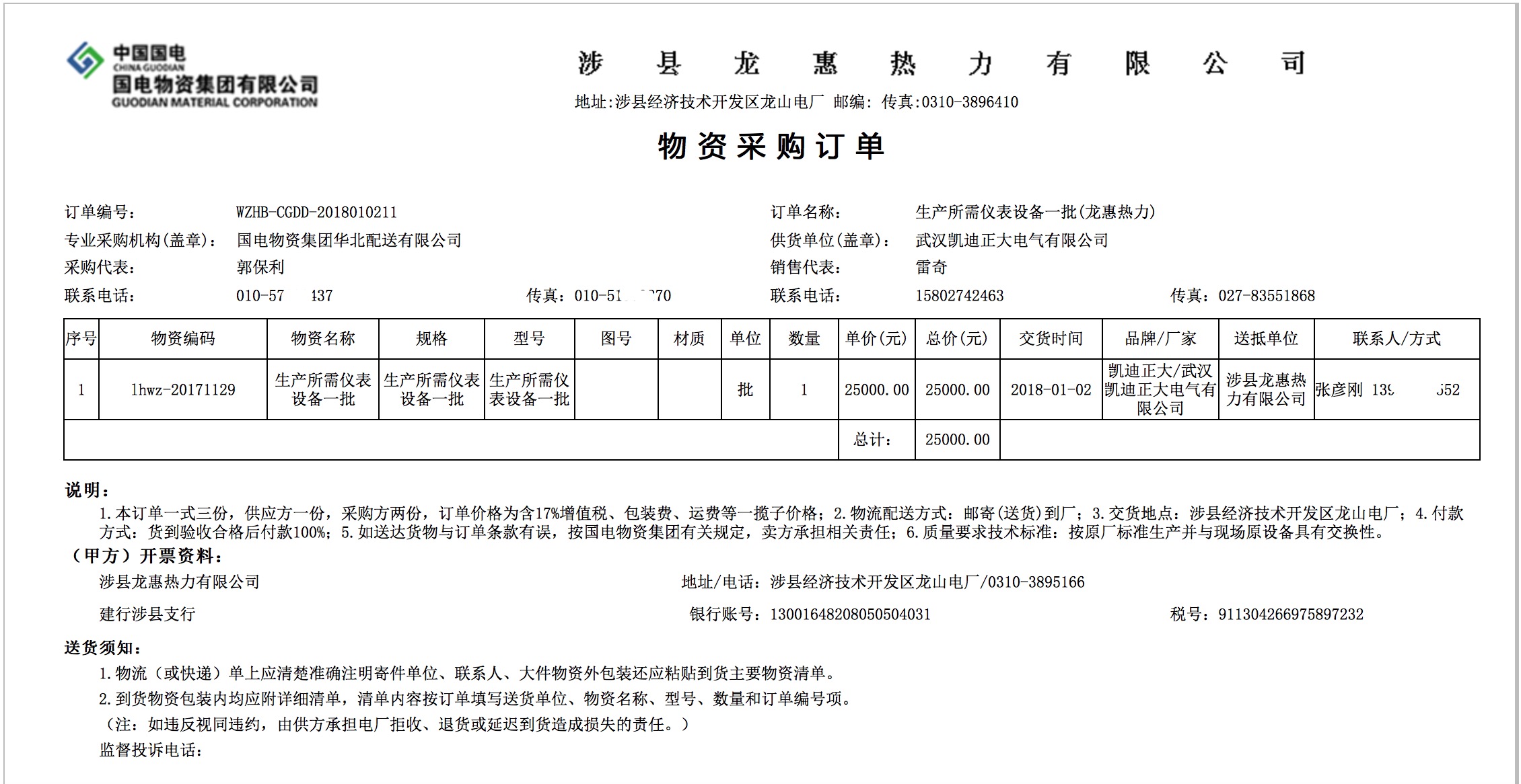 賀我司中標(biāo)中國國電涉縣龍惠熱力電廠儀表設(shè)備項目