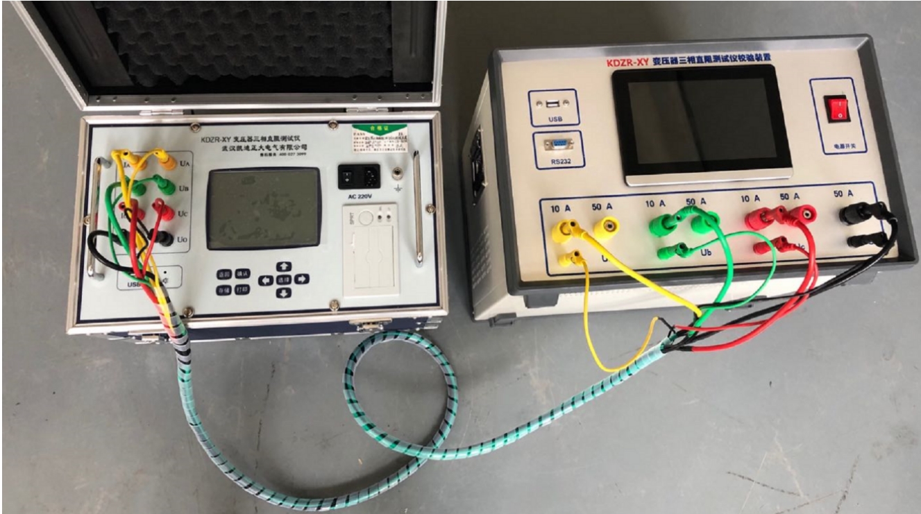 按照以上方法設(shè)置好ABC三相電阻值,等待10秒以上,便可開始對直阻測試儀進(jìn)行校驗。
