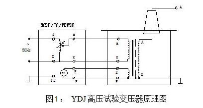 YDJ系列高壓試驗變壓器為單相變壓器,連結組I. I. 用工頻220V(10KVA以上為380V)電源接入(詳細資料請見其具體使用說明書)系列操作箱(臺),經(jīng)操作箱內(nèi)自耦調壓器(50KVA以上調壓器外附)調節(jié)至0-200V(或0-400V)電壓輸出至YDJ(試驗變壓器的初組繞組,根據(jù)電磁感應原理,在高壓試驗變壓器高壓繞組可獲得試驗所需的高電壓。