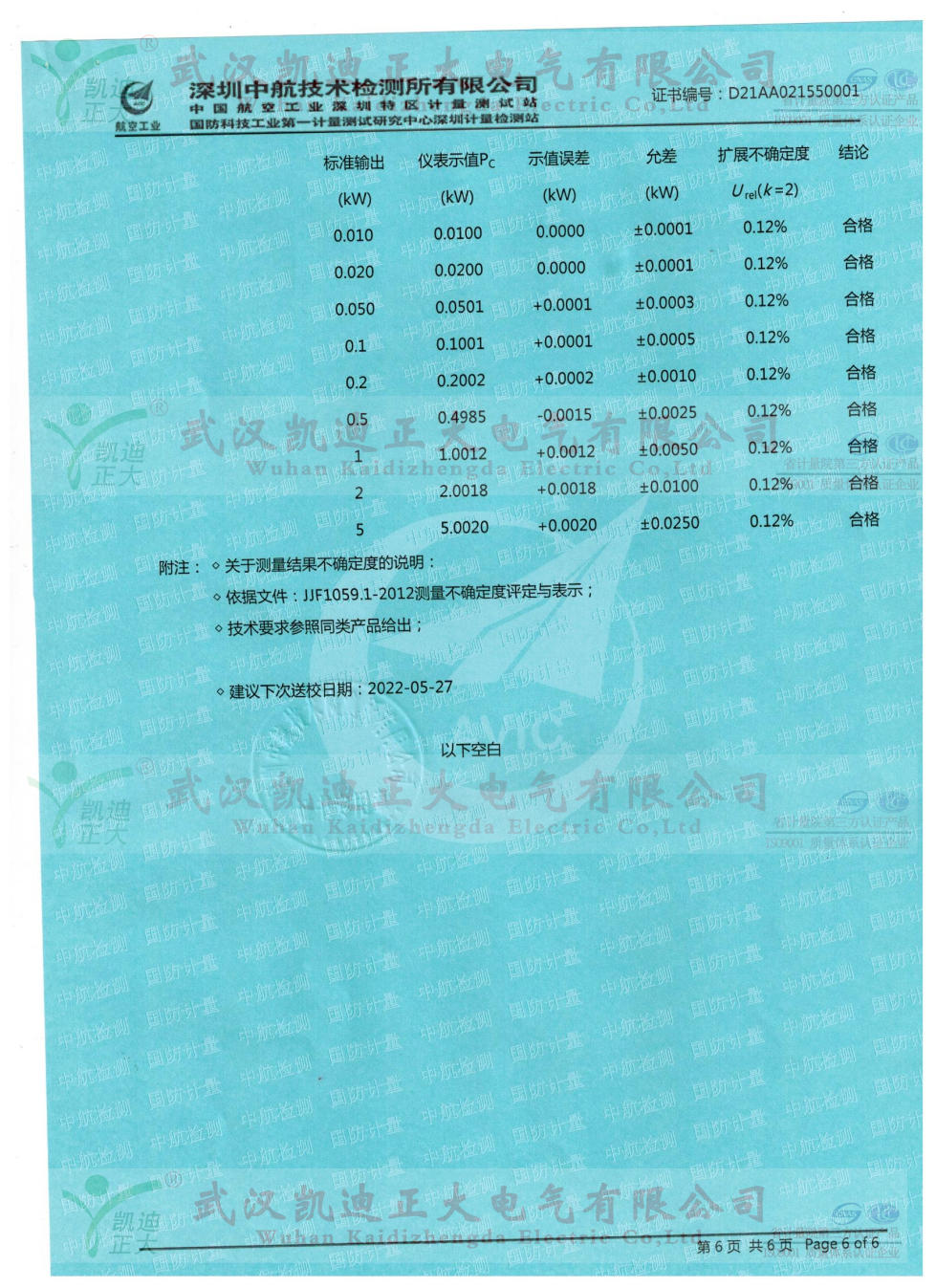 5月初,接市場部要求將KDBR-IV變壓器容量及特性測試儀送檢中國合格評定國家認可委員會(CNAS)深圳中航技術檢測所檢定,獲得校準合格證書。