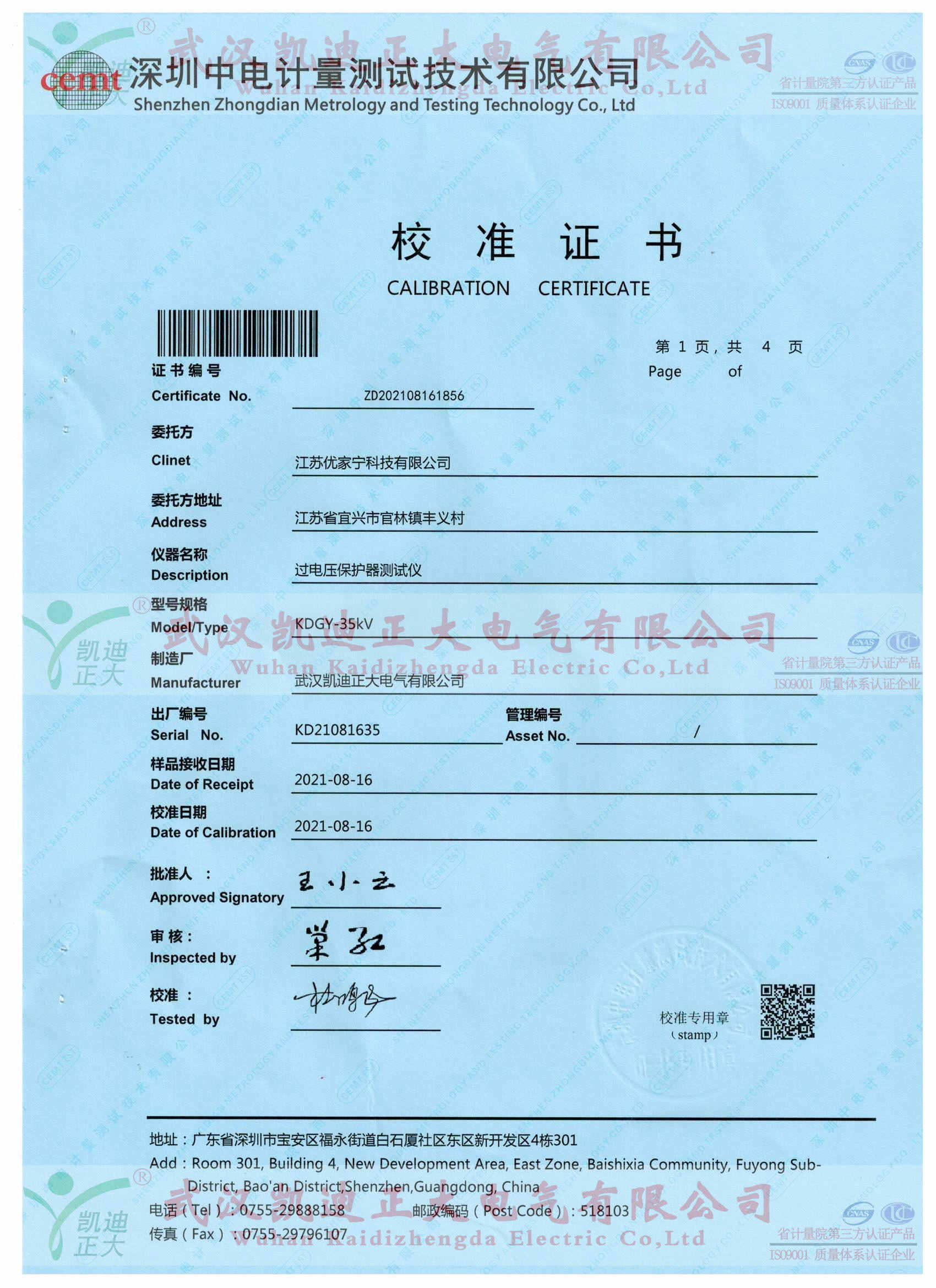 4、疊加雷電沖擊電壓試驗(yàn)(推薦武漢凱迪正大電氣有限公司KDLC-800kV),試驗(yàn)對(duì)象應(yīng)經(jīng)受:正極性U下疊加負(fù)極性雷電沖擊電壓U連續(xù)10次:負(fù)極性U下疊加正極性操作沖擊電壓U.連續(xù)10次。