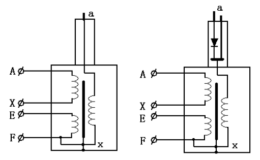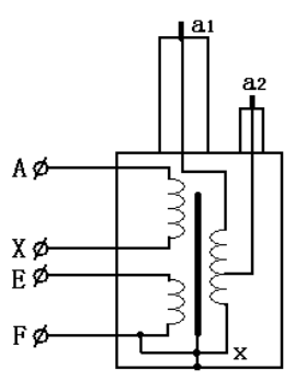 為了同時(shí)滿(mǎn)足一個(gè)變壓器電壓較高電壓較小與電流較低電流較大之間的矛盾,將高壓繞組分成兩個(gè)來(lái)繞,一個(gè)是電流較大的繞組,另一個(gè)是電流較小的繞組,然后兩個(gè)繞組串接分別引出,原理示意圖如下: