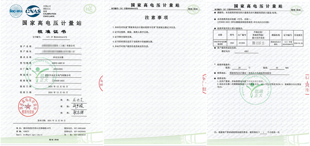 近日,武漢凱迪正大電氣的脈沖電壓測試設(shè)備中的沖擊分壓器,順利通過國家高電壓計量站的校準,并獲得校準證書。這一成果標志著該設(shè)備在測量精度、穩(wěn)定性和可靠性方面達到相關(guān)標準,為電力設(shè)備絕緣性能檢測提供了強有力的技術(shù)支撐,進一步推動電力安全檢測領(lǐng)域的發(fā)展。