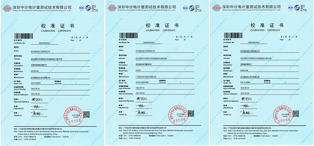 全部通過彰顯產(chǎn)品質量可靠經(jīng)過深圳中計電計量測試技術有限公司的專業(yè)校準,設備全部順利通過測試,成功獲得了校準證書。這不僅驗證了武漢凱迪正大產(chǎn)品在設計與制造過程中的嚴格質量控制,也充分展示了其產(chǎn)品在性能、穩(wěn)定性與可靠性方面的優(yōu)秀表現(xiàn)。批量設備全部通過校準,無疑是對武漢凱迪正大產(chǎn)品質量的有力代言。