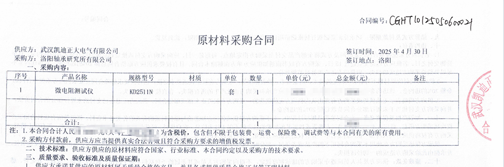 洛陽(yáng)軸承研究所有限公司對(duì)設(shè)備的選擇秉持著高標(biāo)準(zhǔn)、嚴(yán)要求的原則。在決定采購(gòu)KD2511N微電阻測(cè)試儀前,該公司進(jìn)行了詳盡的市場(chǎng)調(diào)研與產(chǎn)品對(duì)比。武漢凱迪正大以其專(zhuān)業(yè)的技術(shù)團(tuán)隊(duì)、完善的售后服務(wù)以及眾多成功案例,贏得了客戶的信賴(lài)。