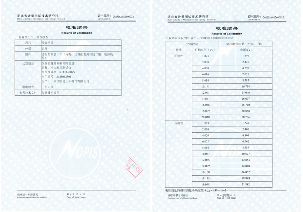 KDCJ-20kV沖擊耐壓測試儀通過校準(zhǔn)